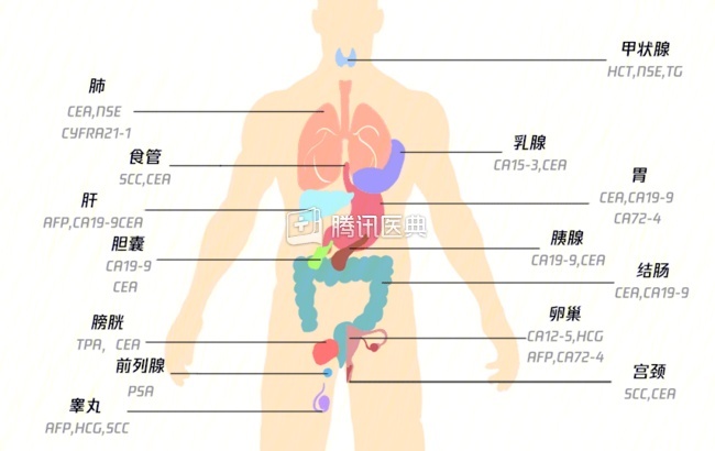 常见的肿瘤标志物及对应的不同身体部位肿瘤有[2]: