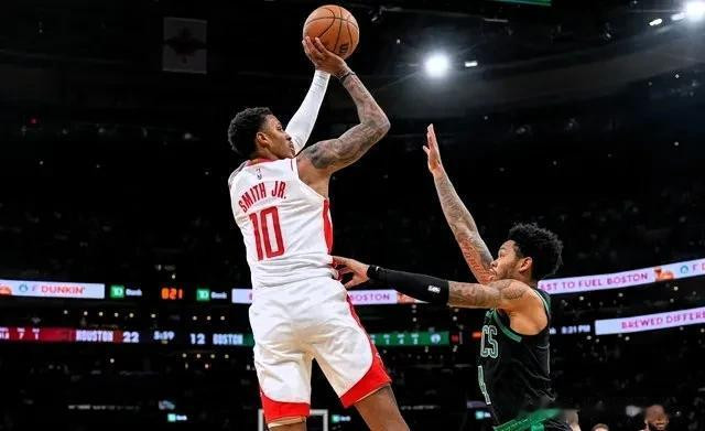 除了这仨核心,火箭的角色球员也集体爆发。小史密斯拿了12分6篮板4盖帽,最精彩的是布朗想扣篮的时候,被他迎面狠狠盖了下来,那帽扇得太解气了。奥科吉、伊森、谢泼德每人都拿了12分,三分投得一个比一个准。全队都能得分,绿军根本防不过来,这也是火箭能赢27分的关键,光靠一个杜兰特不够,所有人都站出来了。