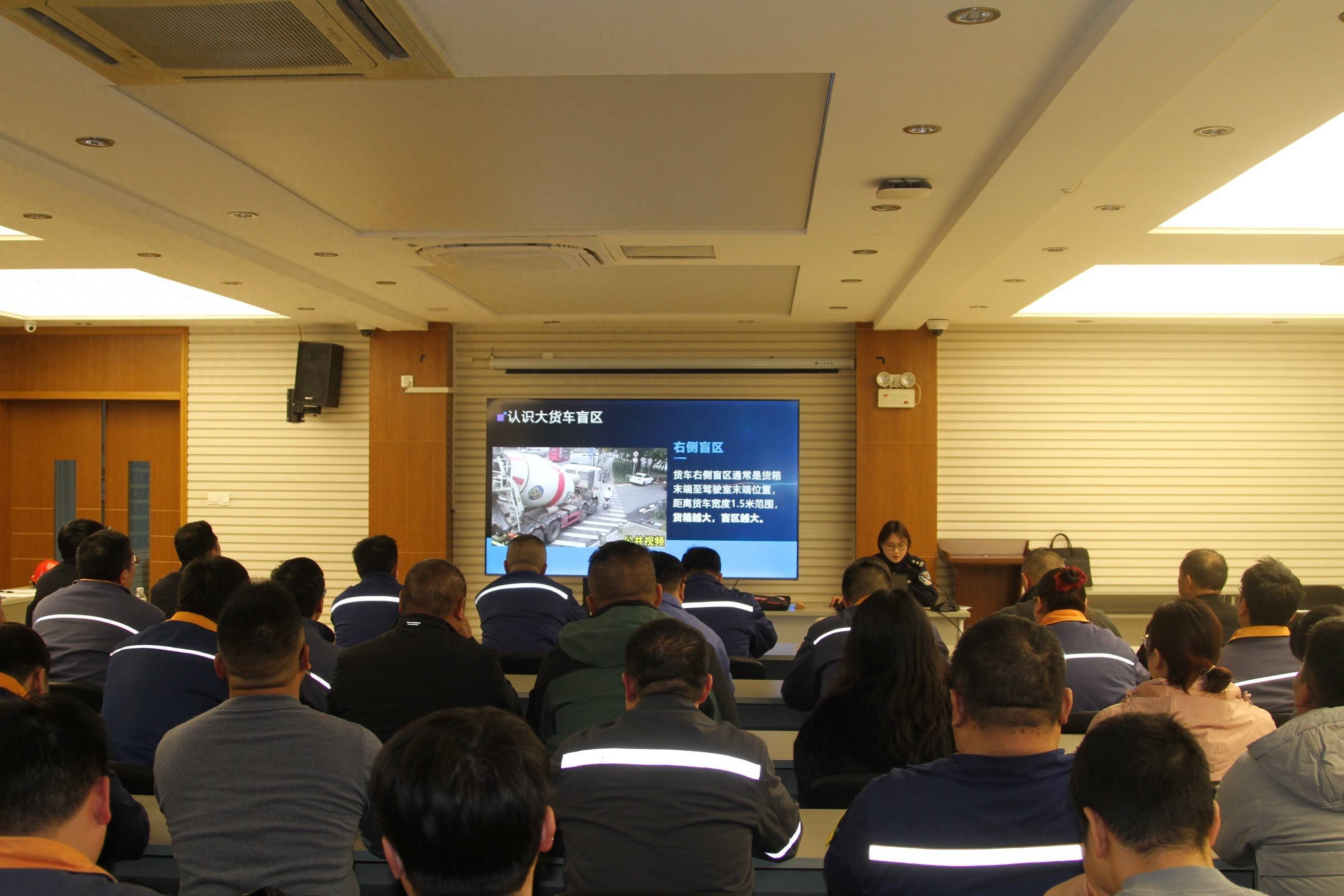 为增进宣讲趣味性,加深与会者印象,刘敏还时不时穿插互动问答。“货车右转为何必停?”“如何规避盲区?”司机们踊跃举手,一位年轻司机答对获交警小熊奖励,现场气氛严肃又活跃。刘敏还提醒司机,既要约束自身,也要警惕他人违法风险,提前预判礼让。